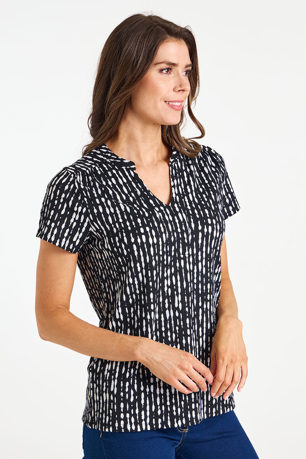 Broken Stripe Print Crinkle Overhead Shirt