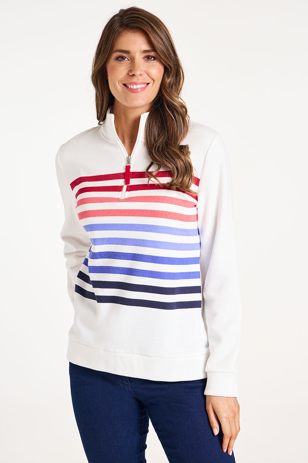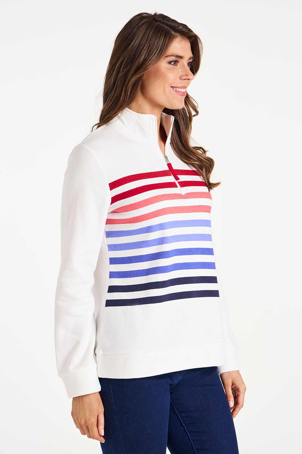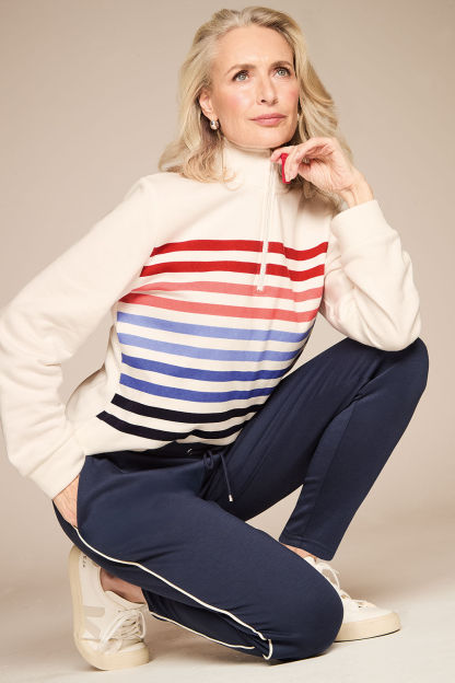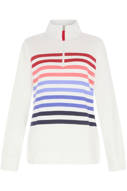 Half Zip Stripe Funnel Neck Sweatshirt
