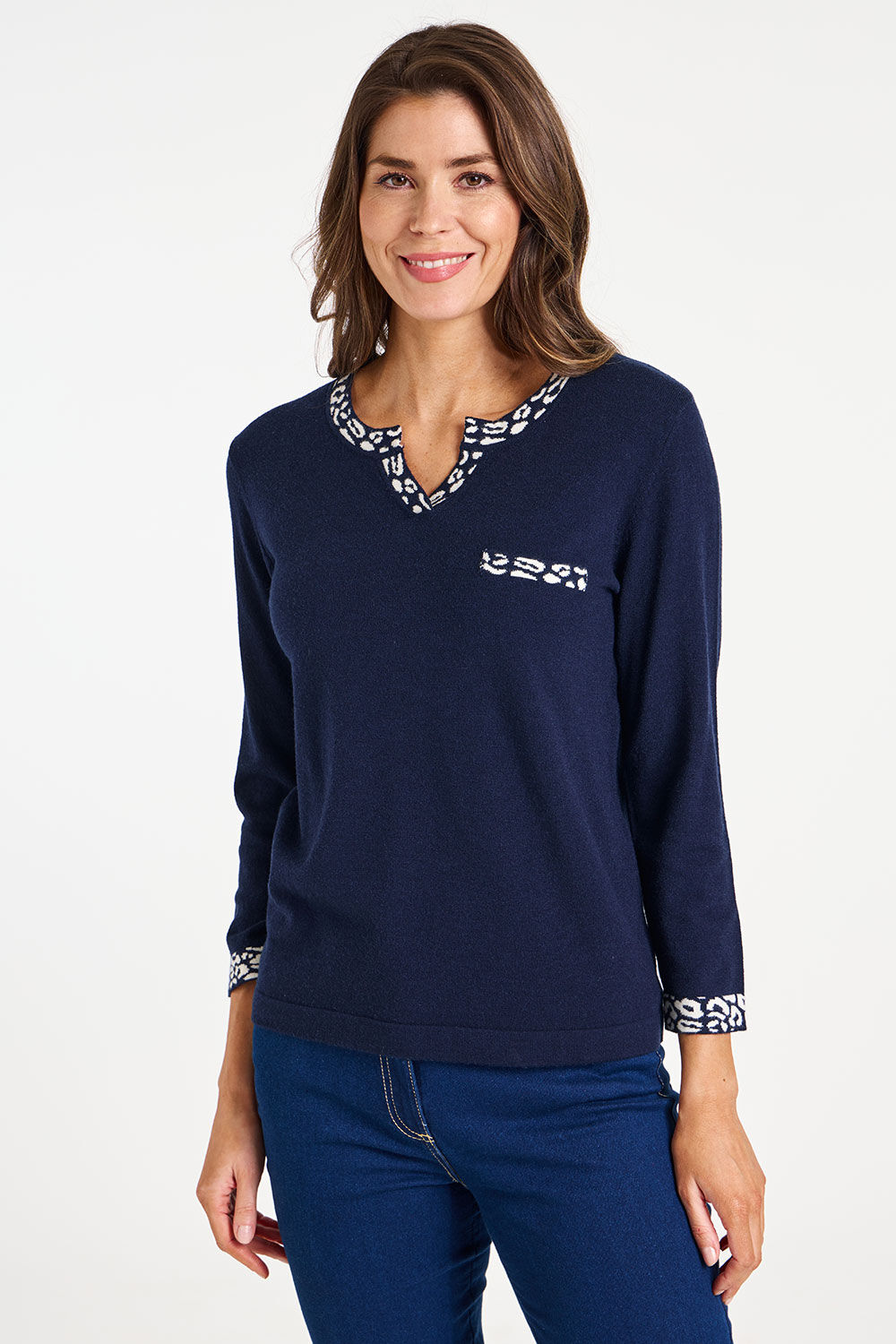 Leopard Print Trim Jumper