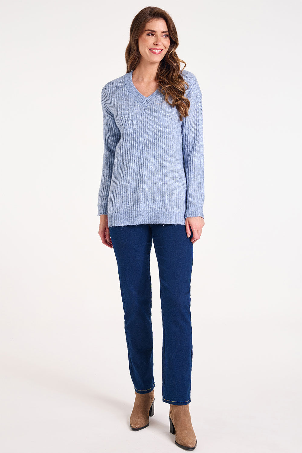 Long Sleeve V-Neck Knitted Tunic