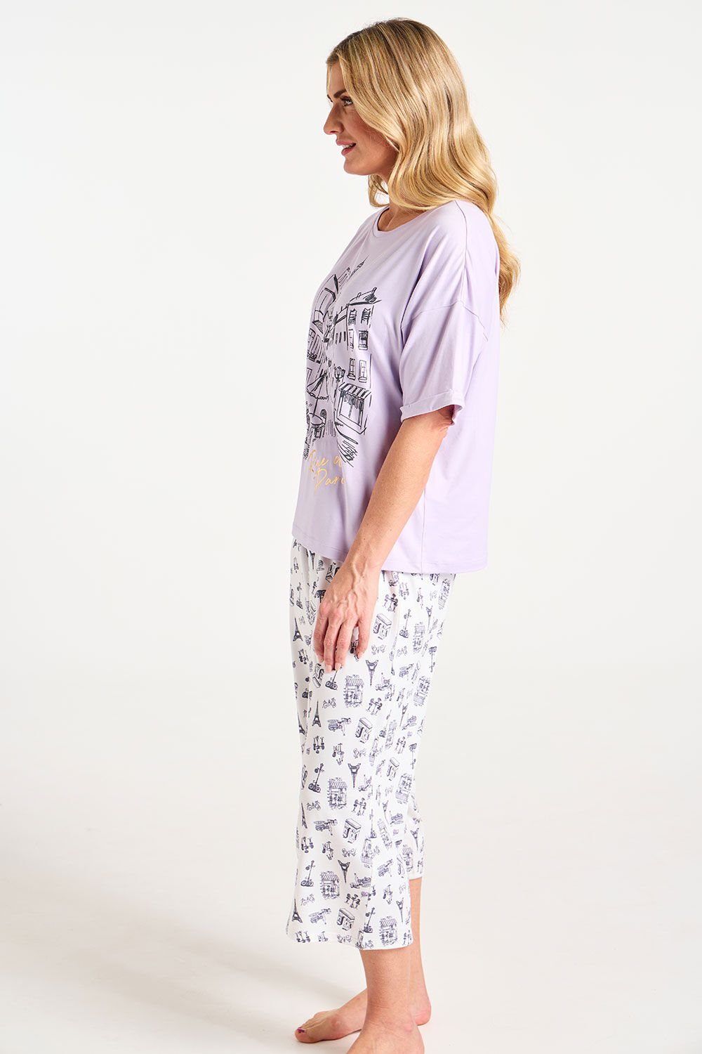 Scenes Of Paris Print 3/4 Length Pyjama Set