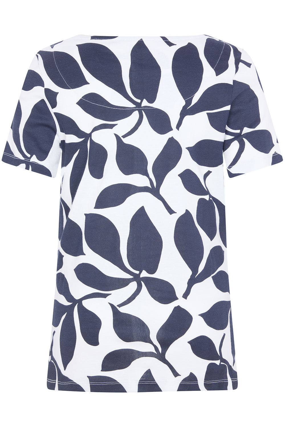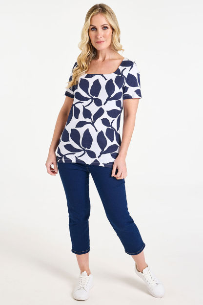Short Sleeve Navy Laurel Leaf Print Square Neck T-Shirt
