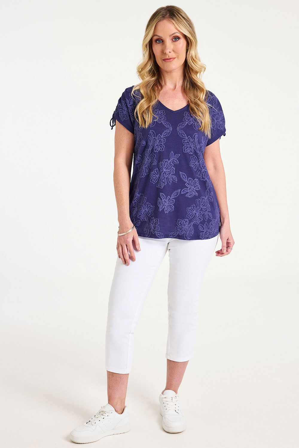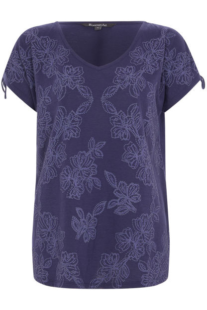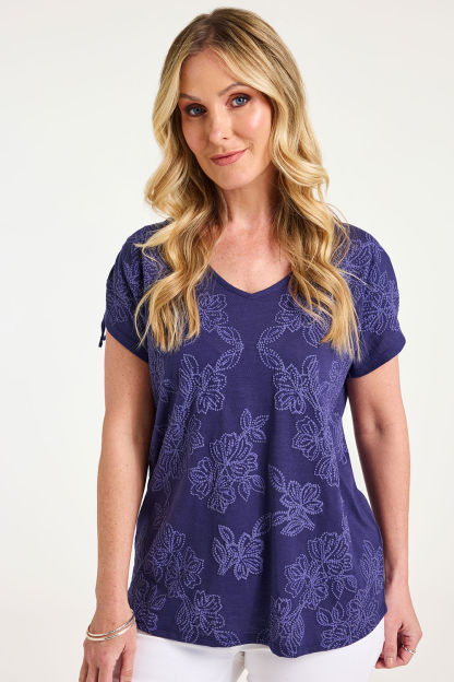 Short Sleeve Tonal Floral Print Shoulder Detail T-Shirt