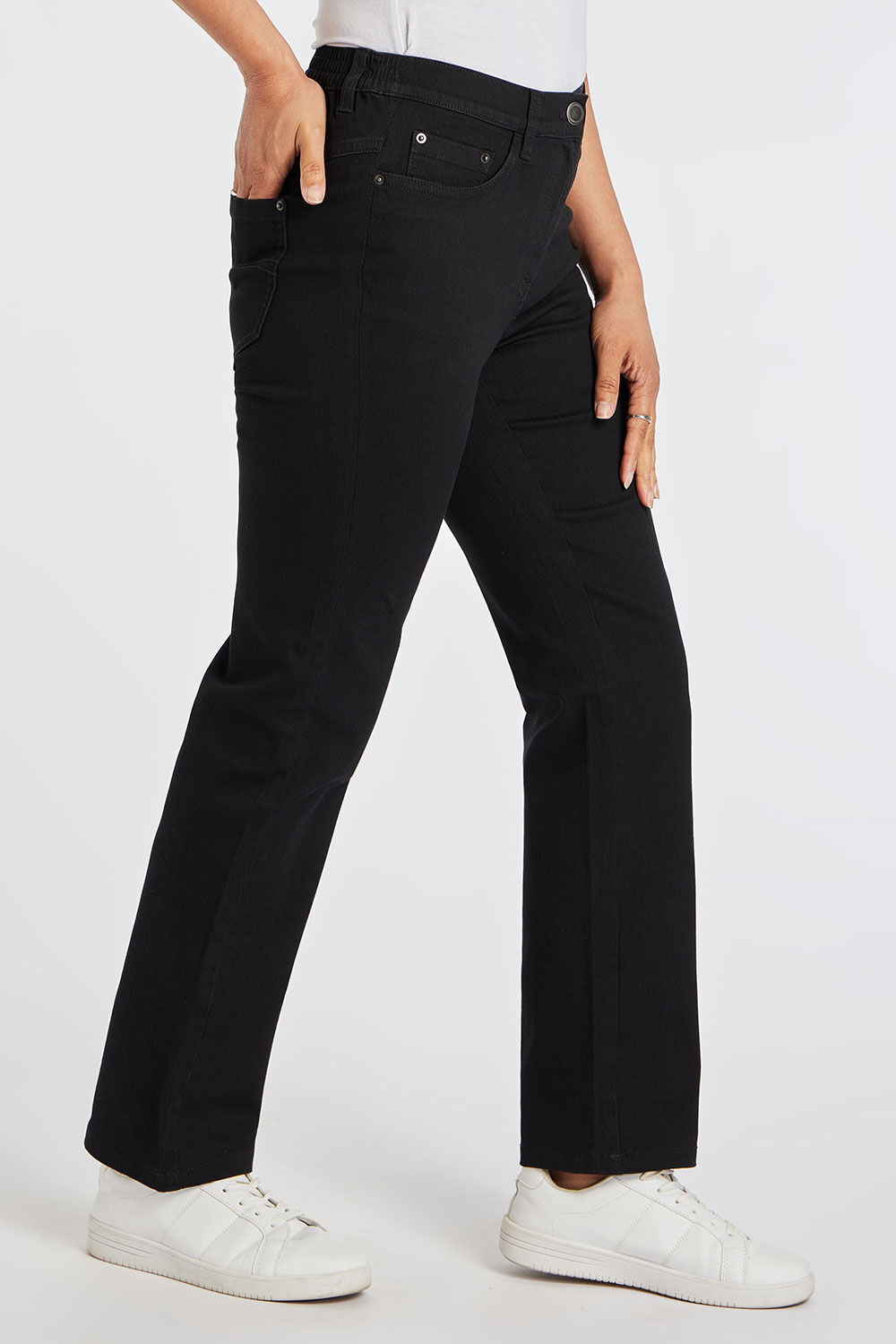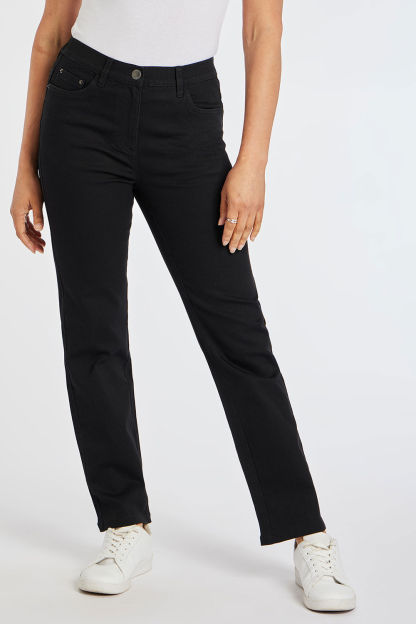 Refresh your denim collection with our SARA straight leg jeans in a beautiful cotton rich stretch fabric. Straight leg jeans are a lasting choice that works well with your wardrobe favourites. The mid-rise elasticated comfort waistband will leave you feeling comfortable all day. This style is flattering and elongates your silhouette, as straight-leg jeans are a fabulous choice for most figures. Wear with a T-Shirt and flat shoes for a casual daytime look or dress up with heels and a blouse for a versatile evening look.