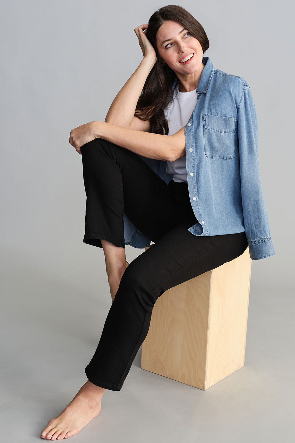 Model In Ink Denim Wears: Size 10 Model’s Height: 5'10" / 177cm